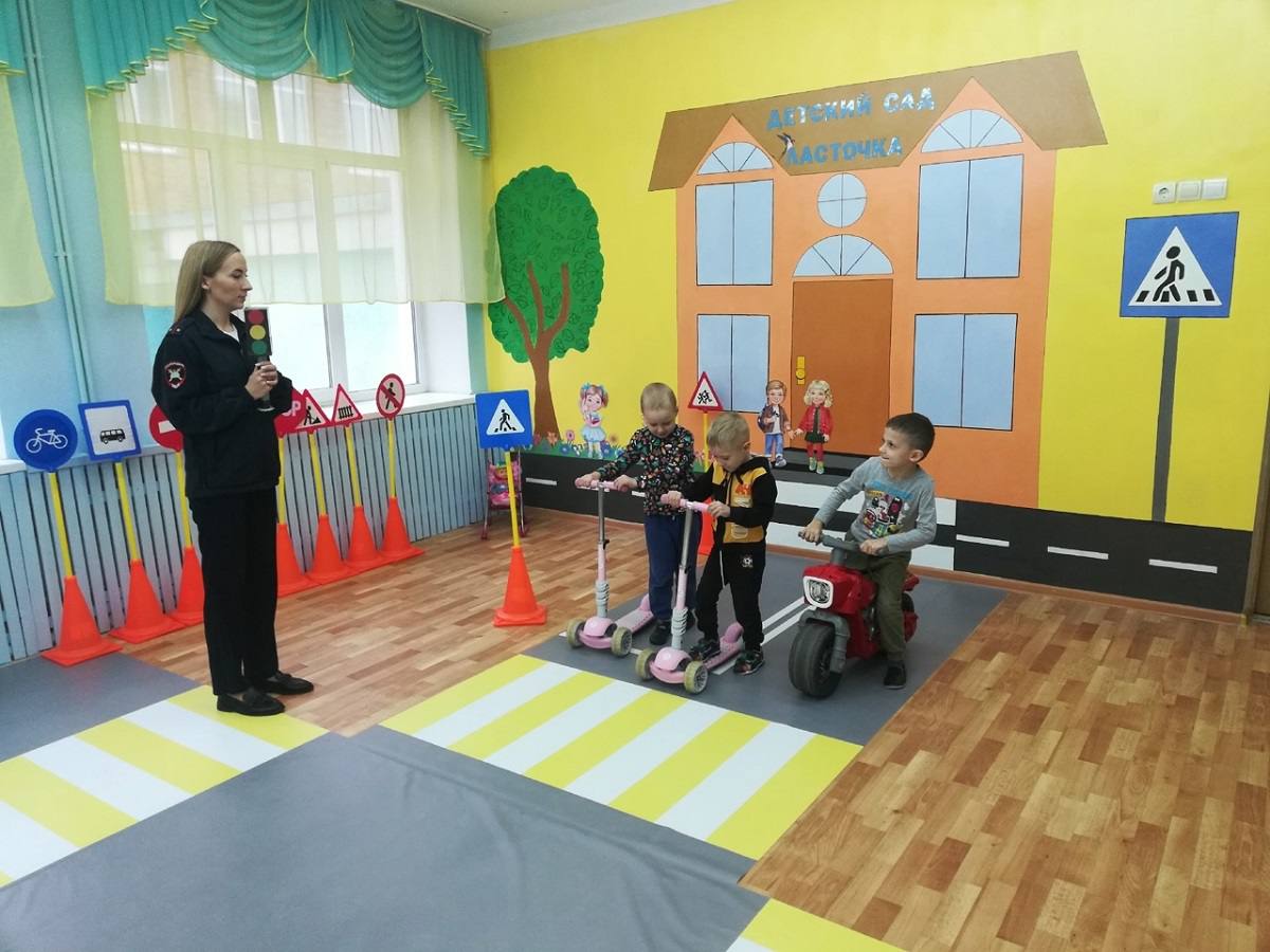 Сотрудники Госавтоинспекции МО МВД России «Рославльсий» провели профилактическую акцию «Правила на дороге – правила для жизни!» для юных участников из МБДОУ «Ласточка» г. Рославля.
