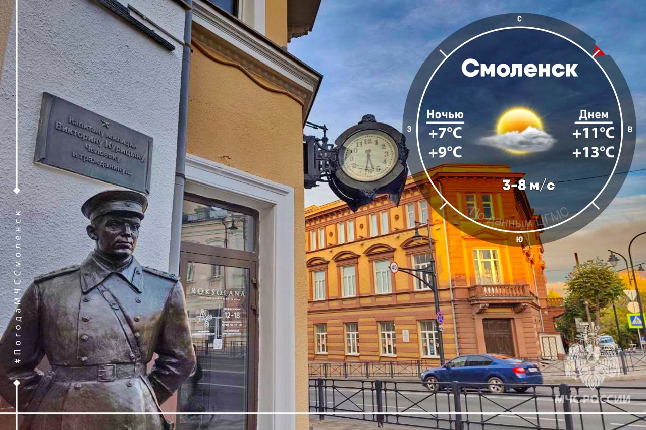 в Смоленске: ночью +7…+9°C, днём +11…+13°C.