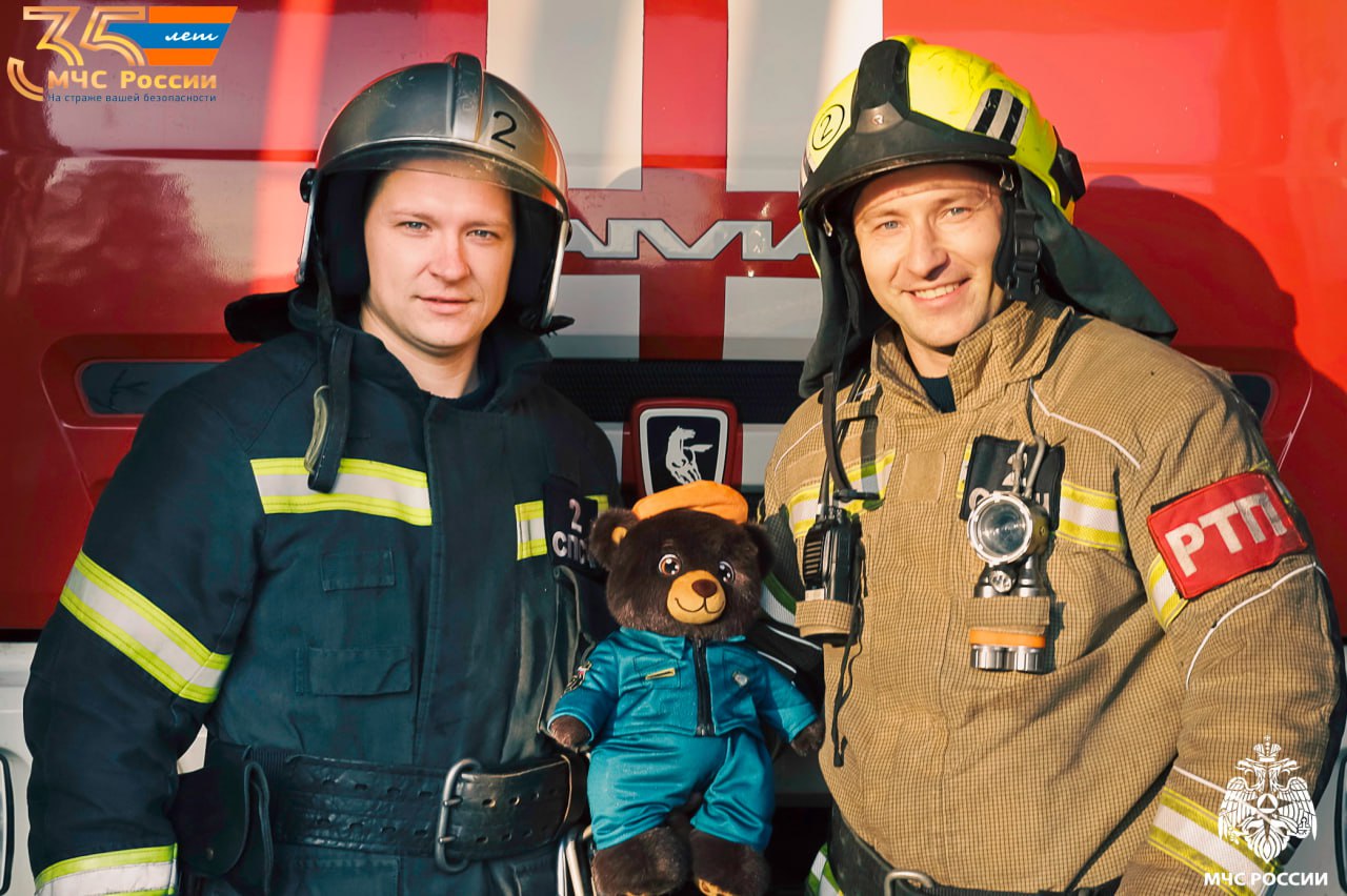 Пожарные 2 специализированной пожарно-спасательной части и Мишка-спасатель желают вам доброго утра!