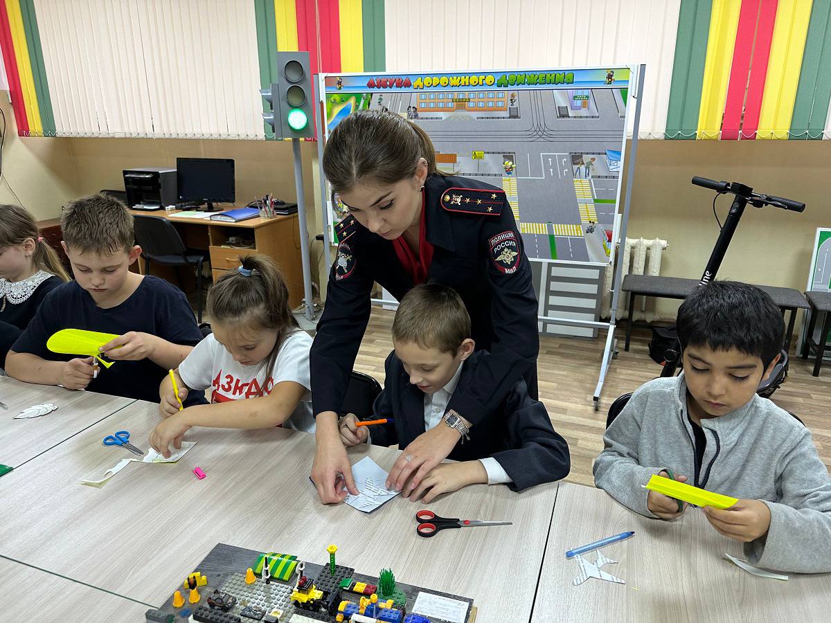 В ходе занятия дорожный полицейский обратила внимание школьников на необходимость использования световозвращающих элементов на одежде и рюкзаках. Они помогают водителям вовремя заметить человека на проезжей части и остановить транспортное средство. Автоинспектор также напомнила о правилах безопасного поведения на дорогах и вблизи них, и о том, как правильно переходить дорогу по пешеходным переходам.