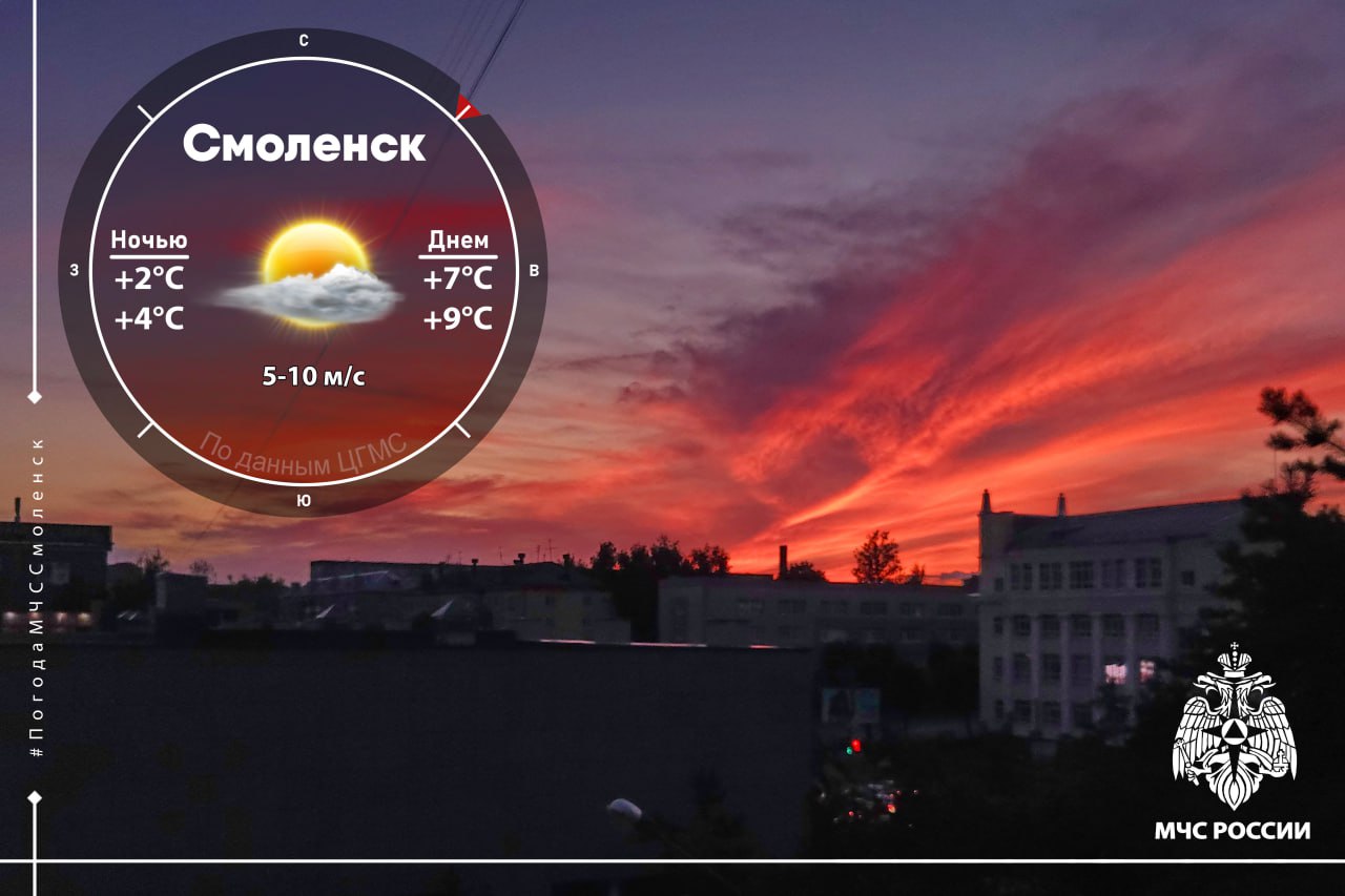 в Смоленске: ночью +2°C …+4°C, днём +7°C…+9°C.
