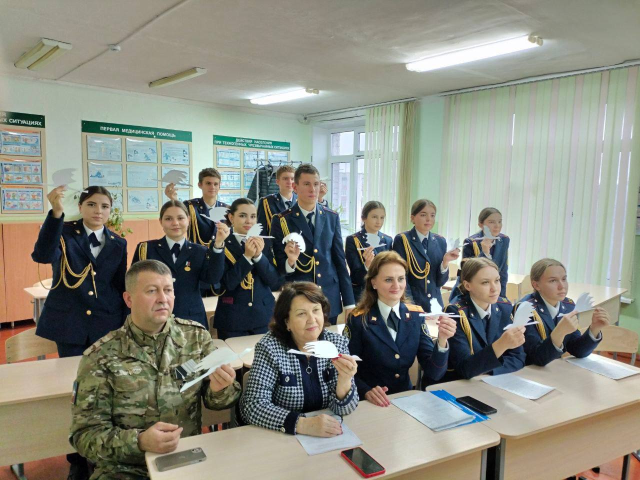 В рамках реализации образовательного проекта Следственного комитета России «Патриоты Отечества» между профильными кадетскими классами Смоленского фельдмаршала Кутузова кадетского корпуса, школы № 7 «Русская классическая школа» г. Рязани, школы № 15 имени Героя Советского Союза Д. Я. Старостина г. Ульяновска состоялся патриотический урок на тему: «Мы помним! Мы гордимся! Мы будем достойны!». Мероприятие было приурочено к XV Всероссийской акции памяти павших воинов России «Дни белых журавлей».