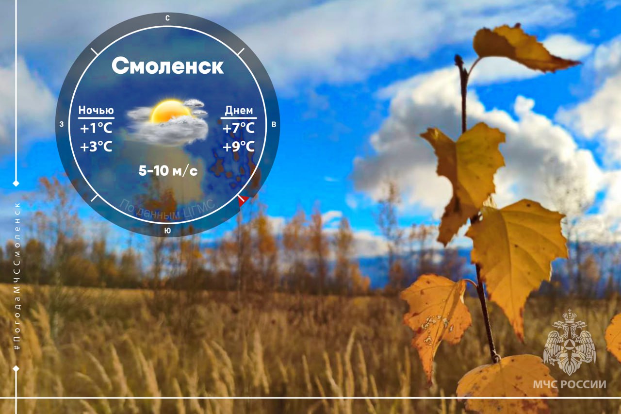 в Смоленске: ночью +1°C …+3°C, днём +7°C …+9°C.