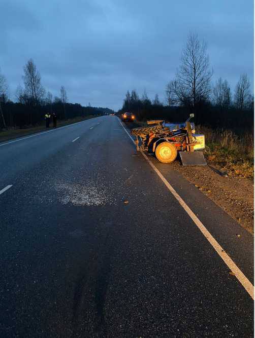 ДТП произошло 08.11.2025 около 06 часов 40 минут на 1033км + 550м федеральной автодороги Р-132 « Золотое кольцо Ярославль - Кострома - Иваново - Владимир - Гусь-Хрустальный - Рязань - Михайлов - Тула - Калуга - Вязьма - Ржев - Тверь - Углич - Ярославль» Новодугинского муниципального округа Смоленской области. Из собранных сотрудниками Госавтоинспекции материалов следует, что 53-летний водитель, управляя автомашиной «Фольксваген Таурег», не выбрал безопасную дистанцию до впереди движущейся самодельной самоходной машины (трактора), под управлением 56-летнего водителя и совершил с ней столкновение. В результате ДТП водитель самодельной самоходной машины (трактора) получил телесные повреждения, с которыми доставлен в медицинское учреждение.