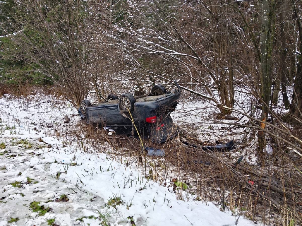 ДТП произошло 17.11.2025 около 10 часов 20 минут на 1-м км автодороге «Новодугино - Днепровское – Мольно» Новодугинского муниципального округа. Из собранных сотрудниками Госавтоинспекции материалов следует, что 21-летний водитель, не имея права управления транспортным средством, находясь за рулем автомашины «AUDI А6», не справился с управлением и совершил съезд в кювет с последующим опрокидыванием. В результате ДТП 55-летняя пассажирка получила телесные повреждения, с которыми доставлена в медицинское учреждение.