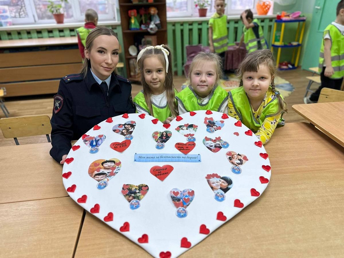 После теоретической части мероприятия началась практическая часть, которая была не только познавательной, но и очень трогательной. Сотрудники Госавтоинспекции предложили детям создать символическое сердце в честь их мам. Ребята с энтузиазмом принялись за работу: на заранее изготовленный макет сердца они прикрепили вырезанные фотографии с изображениями своих мам, а также написали на листочках слова благодарности и любви. Этот творческий процесс стал не только возможностью выразить свои чувства, но и напоминанием о том, как важно заботиться о безопасности на дороге.