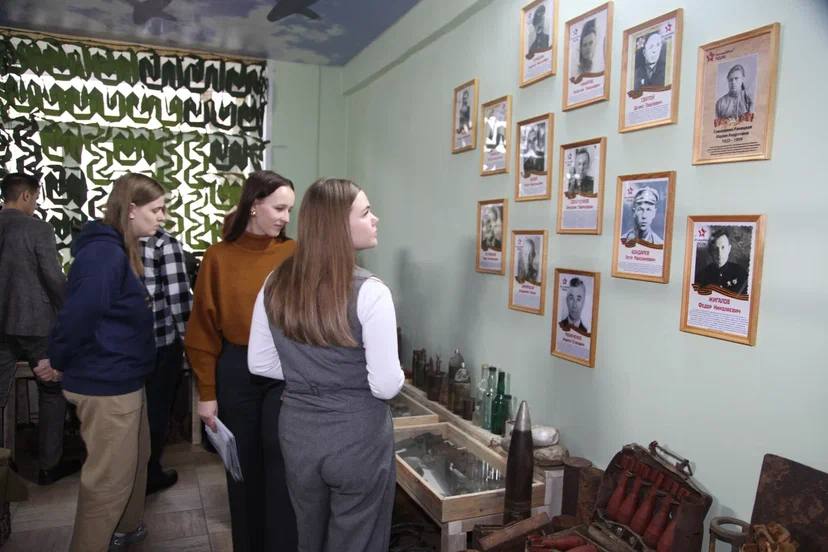 Гости посетили ведомственный музей, где ознакомились с уникальными экспонатами. Особое внимание было уделено рассказу о работе поискового отряда «Следопыт», который занимается поиском и установлением имен погибших в годы Великой Отечественной войны солдат. Студентам также был показан сюжет, посвященный возвращению номерной медали «За боевые заслуги» павшего героя Великой Отечественной войны Телегена Шонмурынова на родину в Казахстан.