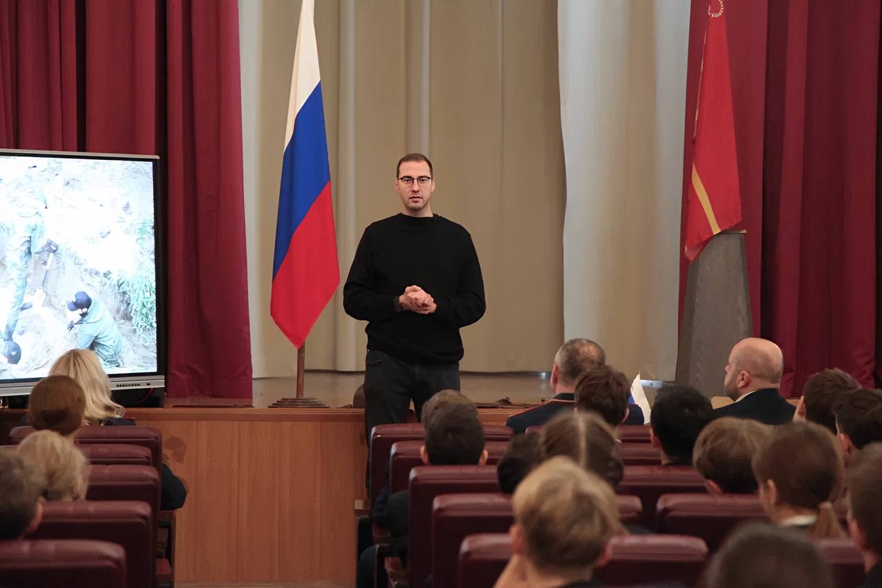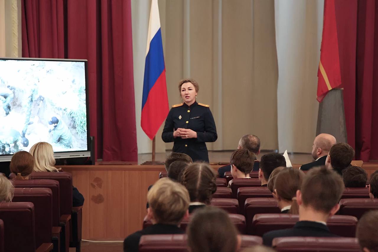 Сотрудник следственного управления Нина Василькова рассказала присутствующим о ведомственном музее и деятельности поискового отряда «Следопыт», а также продемонстрировала фильм о работе поискового отряда, который занимается поиском и увековечиванием памяти погибших защитников Отечества.