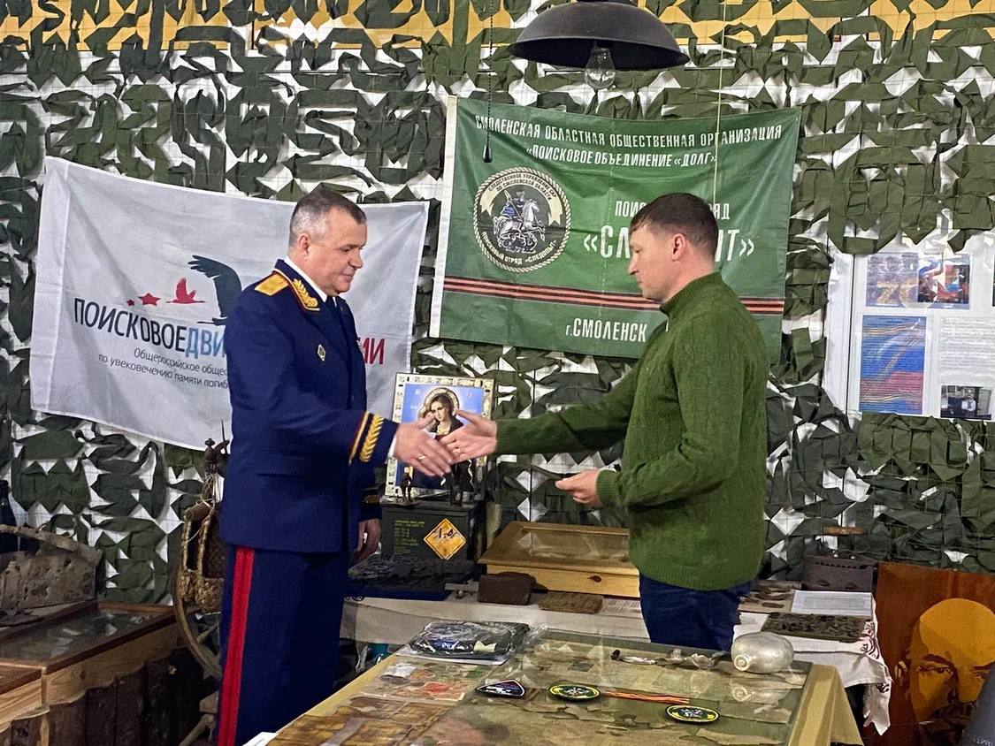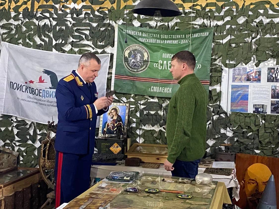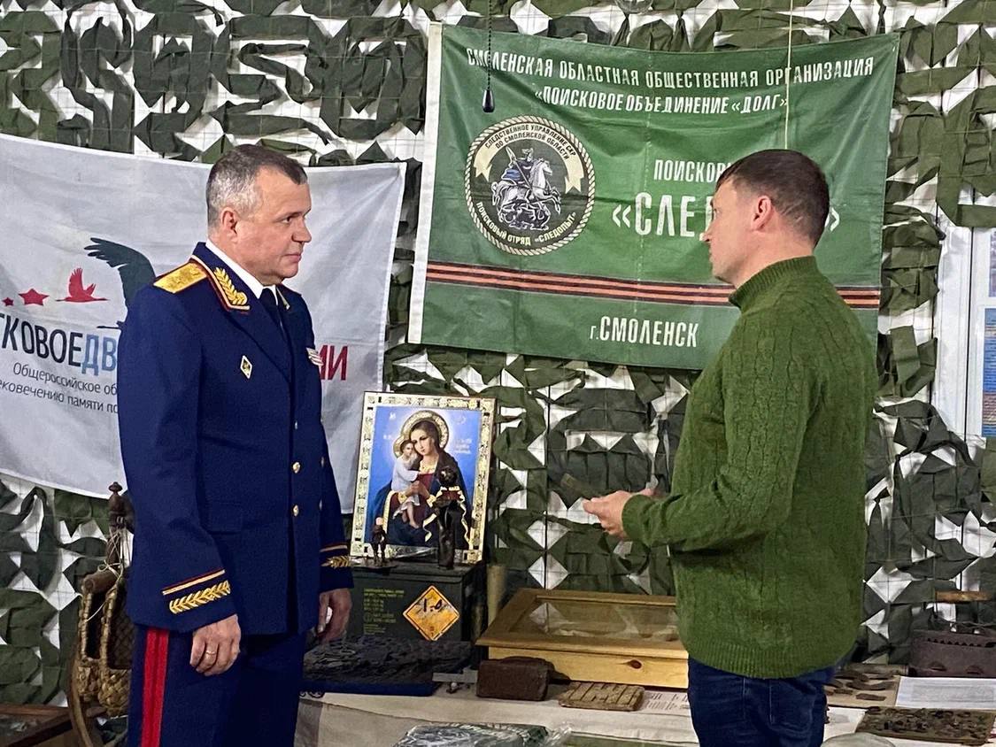 В следственном управлении по Смоленской области состоялась передача иконы Святого Николая Чудотворца от известного путешественника Федора Филипповича Конюхова руководителю ведомства Анатолию Юрьевичу Уханову. Икону передал участник экспедиций Федора Филипповича - Павел Сергеевич Богачев.