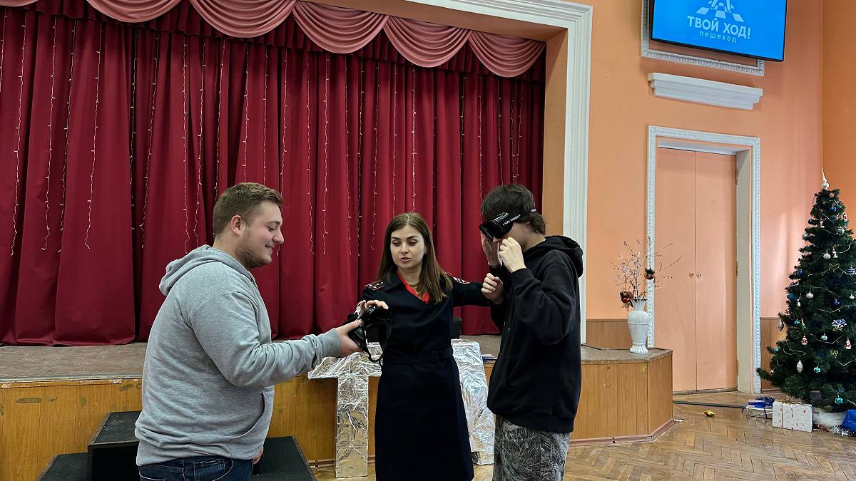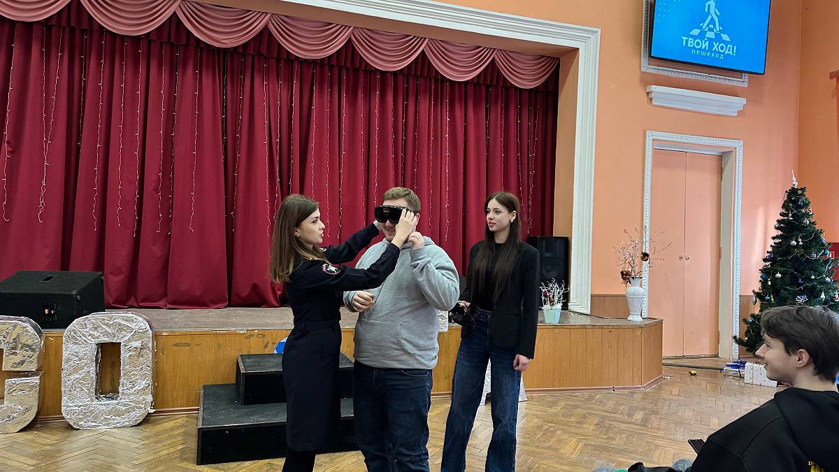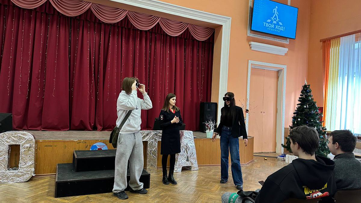 Затем несовершеннолетним было предложено примерить «пьяные очки». Они искажают окружающее пространство и позволяют посмотреть на мир глазами нетрезвого человека. Надев очки, студенты попытались выполнить несколько заданий: пройти по прямой линии, взять ручку со стола или из рук сотрудника. Все это вызвало затруднения: из-за «пьяных очков» молодые люди теряли координацию, не могли ровно пройти между партами и соизмерить расстояние до объекта. После подобного эксперимента с очками ребята будут иметь точное представление о том, почему нельзя садиться за руль нетрезвым.