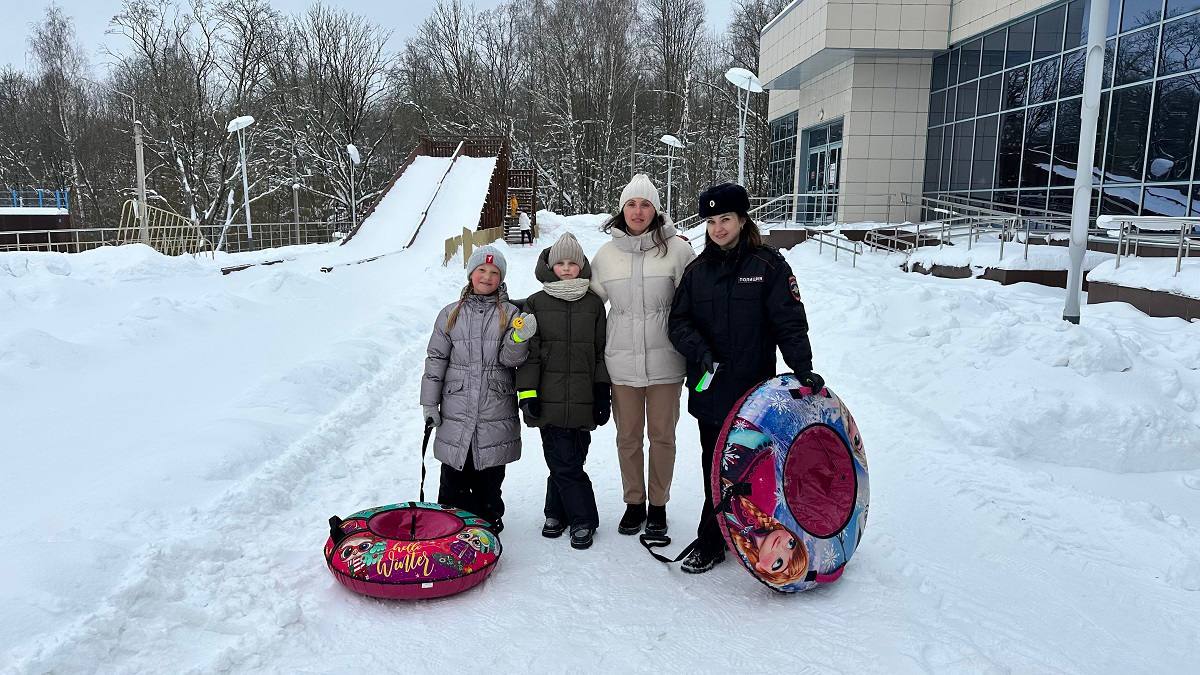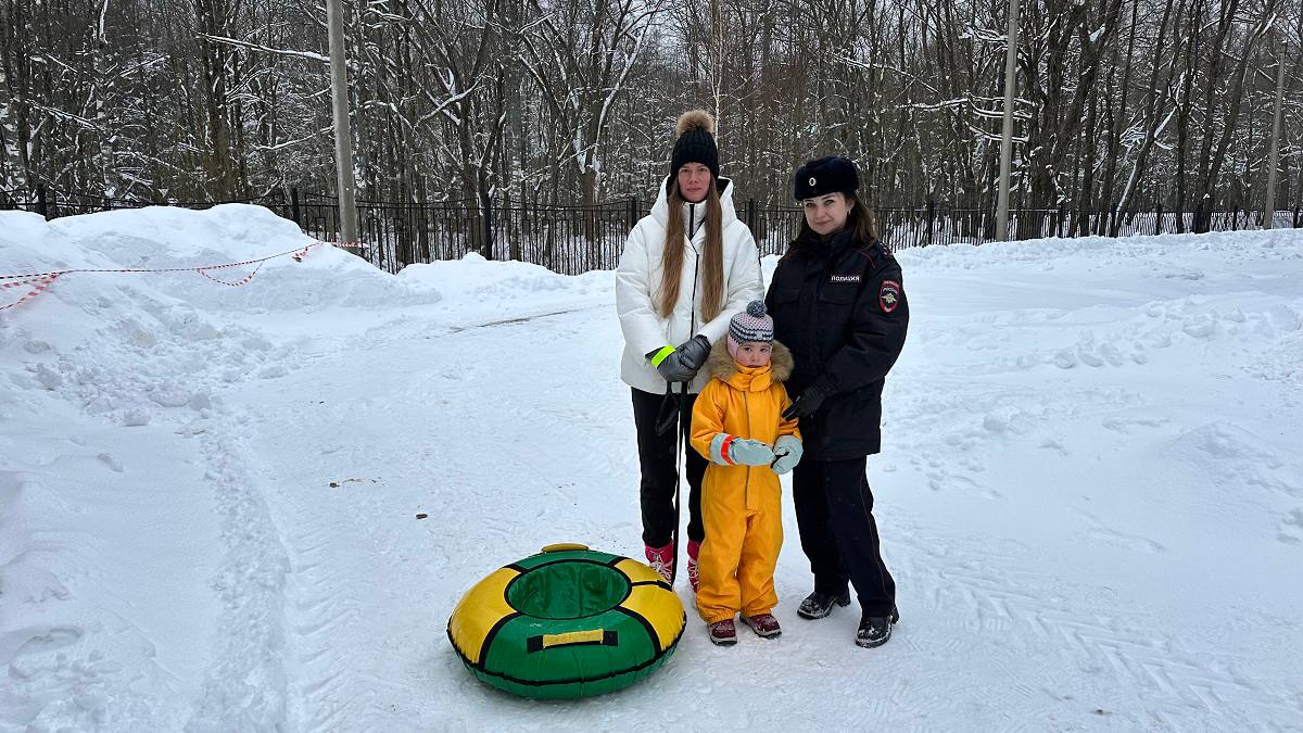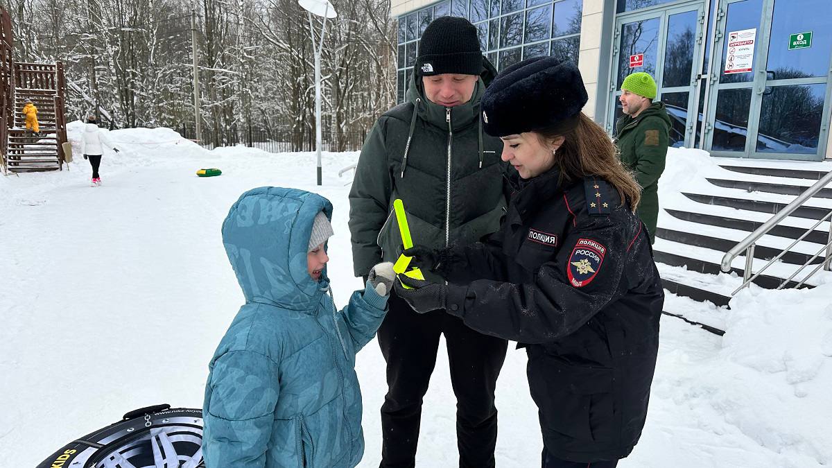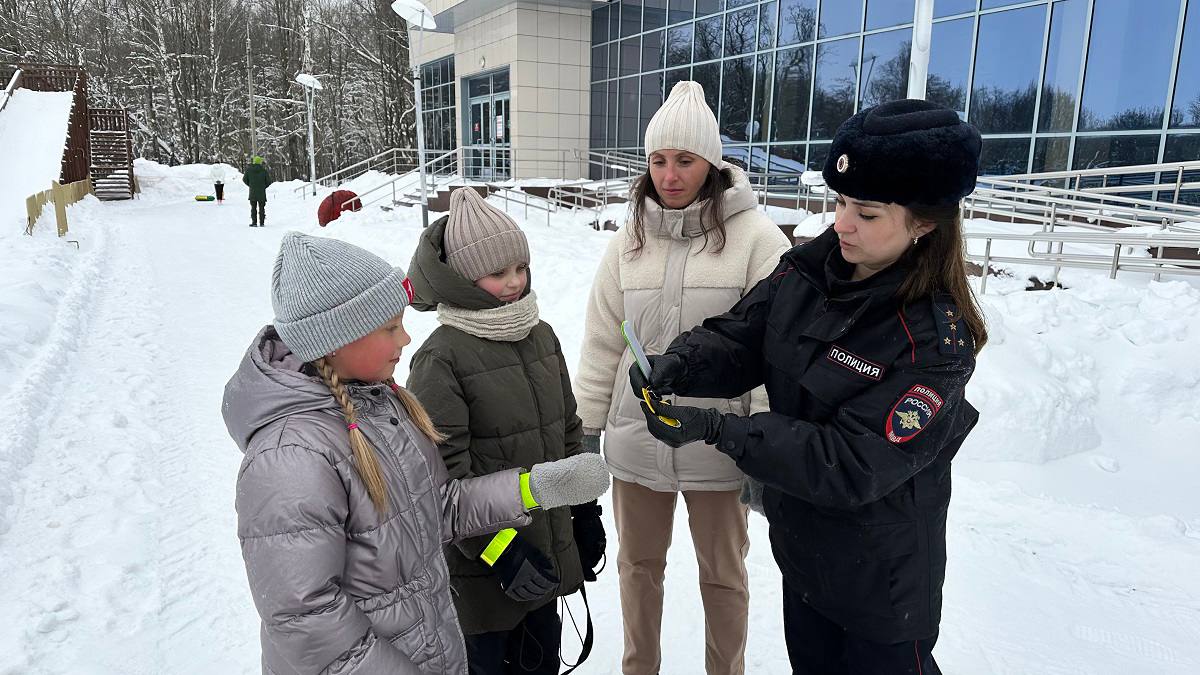 Сотрудник отдела Госавтоинспекции провела профилактическую беседу с ребятами и их законными представителями, которые находились на снежных горках, оборудованных в городе.