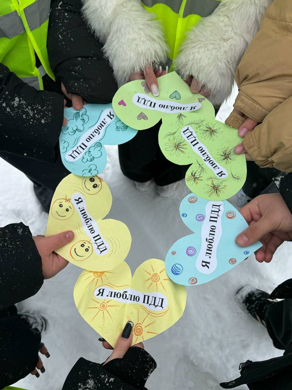 Школьники подготовили своими руками подарки для участников дорожного движения в форме сердец.