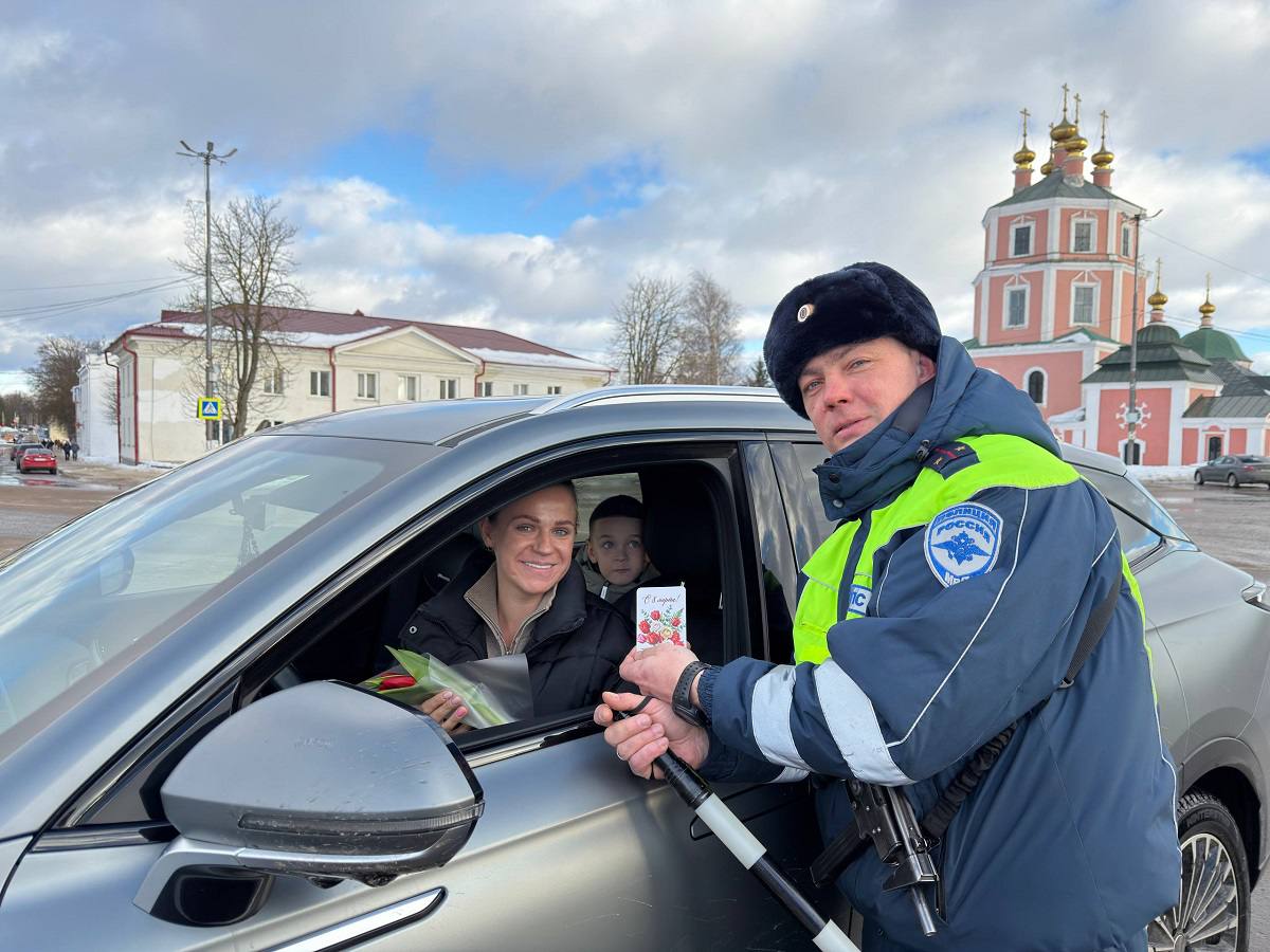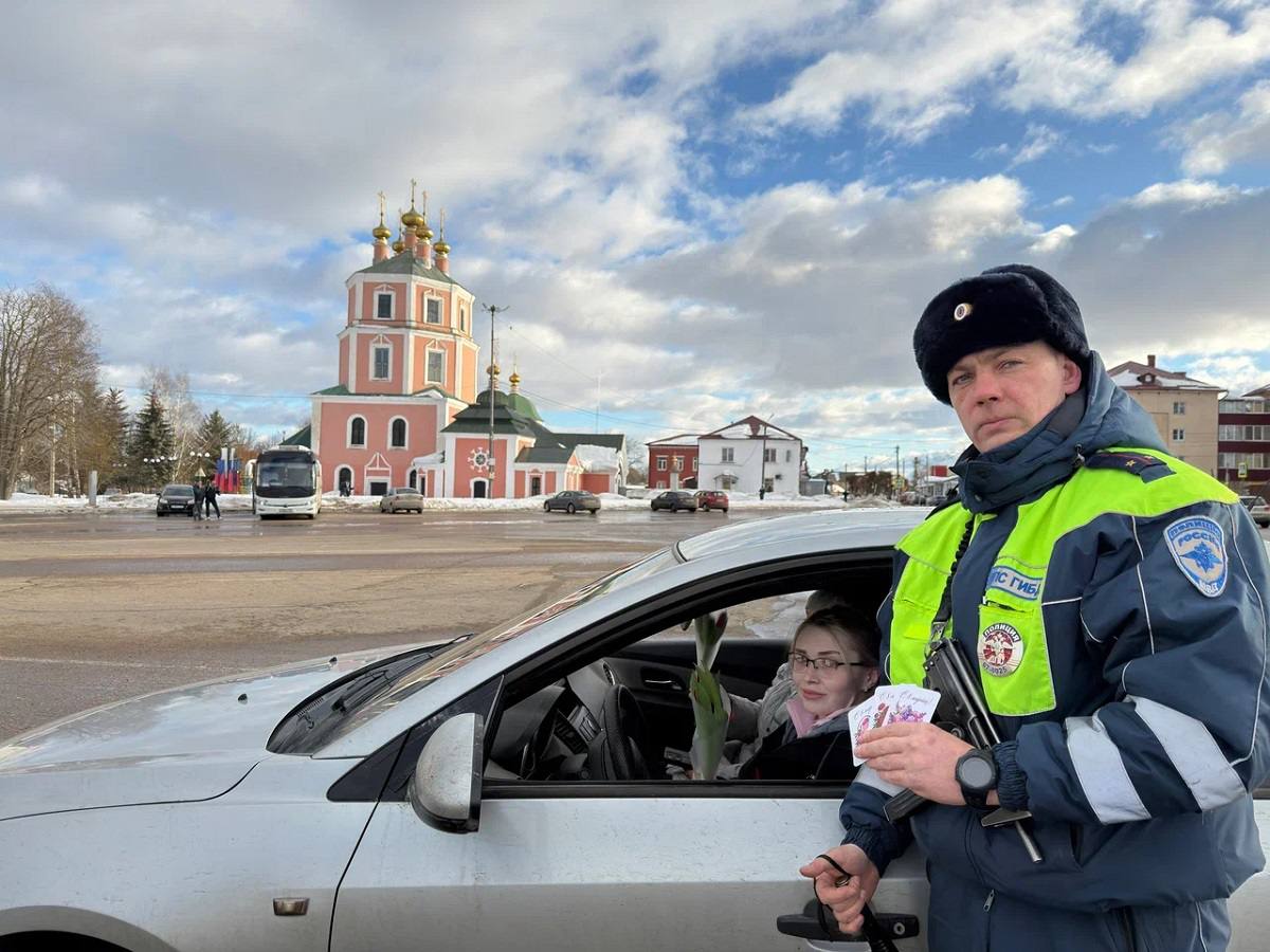 На родине первого космонавта сотрудники отделения Госавтоинспекции МО МВД России «Гагаринский» провели праздничную акцию, приуроченную к Международному женскому дню