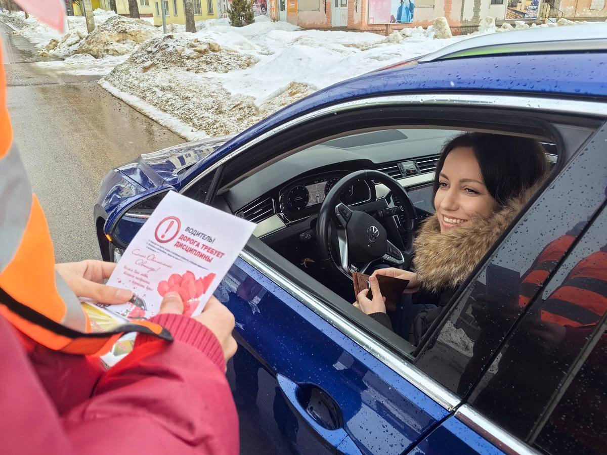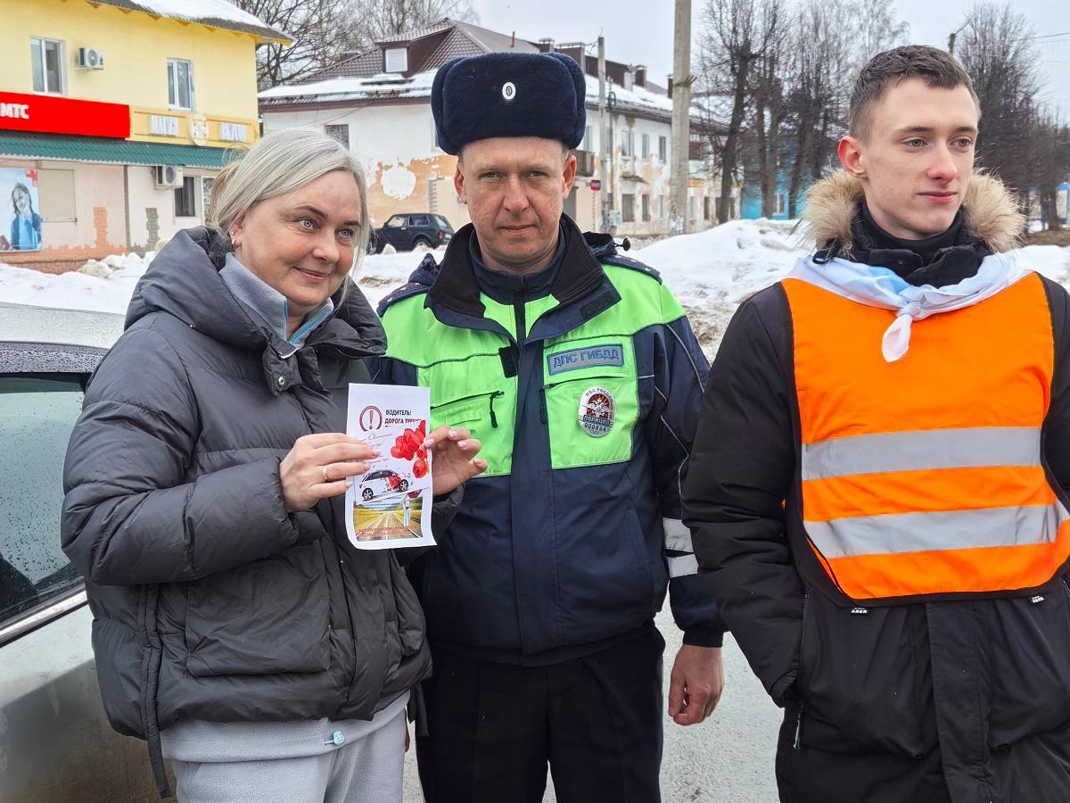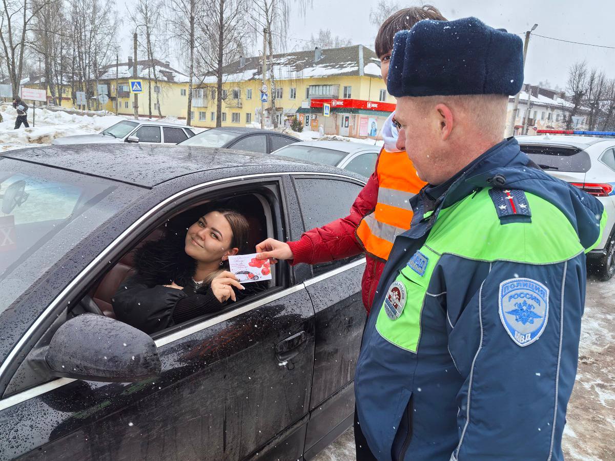 Сотрудники Госавтоинспекции МО МВД России «Дорогобужский» совместно с юными активистами «Движения первых» МБОУ Верхнеднепровская СОШ №3 организовали профилактическую акцию «Поздравление для леди».