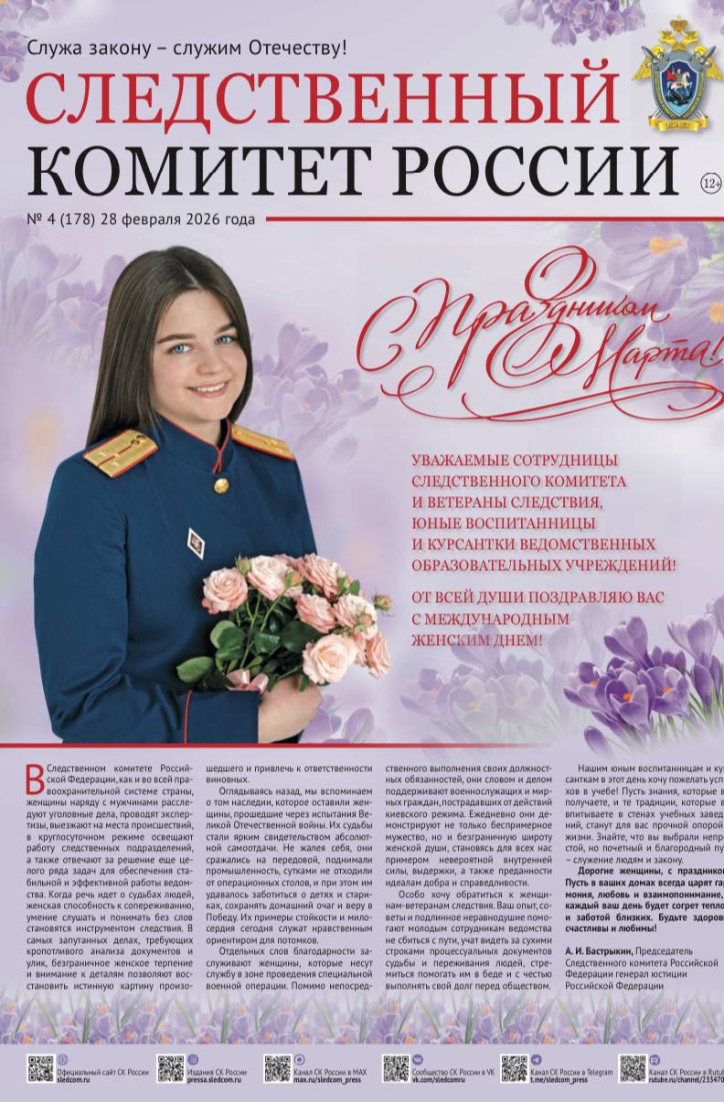 На официальном сайте СУ СК России по Смоленской области в разделе «Издания Следственного комитета России» размещен очередной выпуск газеты «Следственный комитет России» от 28.02.2026 № 4 (178).