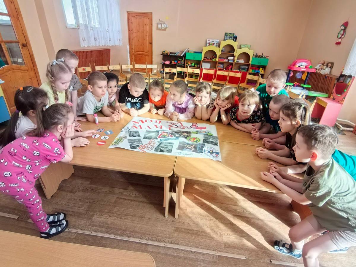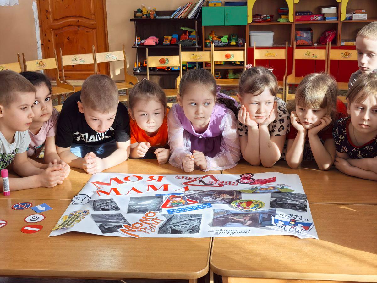 После познавательной беседы дети приступили к изготовлению поздравительной стенгазеты для своих мам. Во время творческого процесса малыши не только проявили заботу и тепло, создавая подарок, но и закрепили знания о безопасности на дороге в игровой форме.