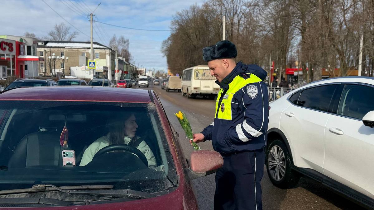 «Цветы для автоледи»: Госавтоинспекция Рославля дарит весеннее настроение