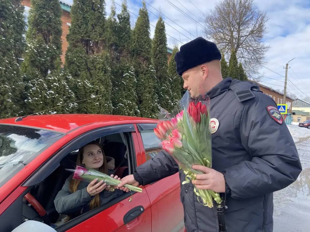 Сотрудники Госавтоинспекции МО МВД России «Починковский» провели акцию «Цветы для автоледи» в честь 8 марта