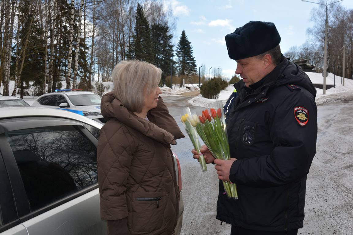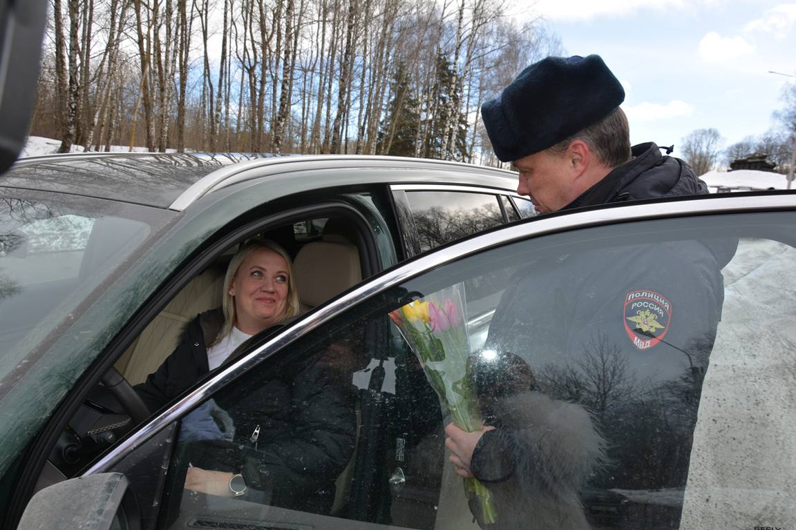Мужчины в форме останавливали автомобили, но вместо строгих вопросов дарили очаровательным водителям цветы, комплименты и теплые пожелания. Для многих дам такой весенний рейд стал полной неожиданностью. Сначала они терялись в догадках, но затем их лица озарялись улыбками, когда вместо проверки документов они слышали искренние поздравления с наступающим праздником.