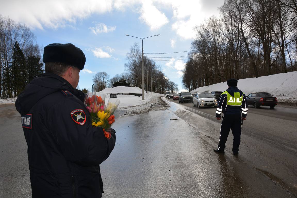 Смоленские автоледи получили весенние комплименты от дорожной полиции