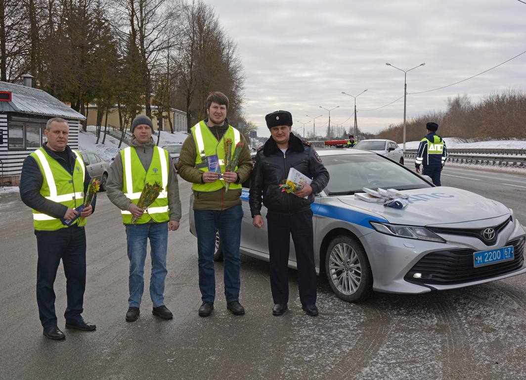 В преддверии Международного женского дня сотрудники Управления Госавтоинспекции УМВД России по Смоленской области провели традиционную праздничную акцию «Цветы для автоледи», направленную на создание позитивного настроения у участников дорожного движения и напоминание о важности взаимного уважения на дорогах.