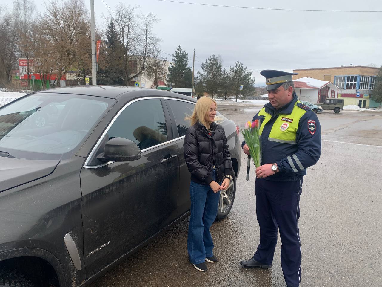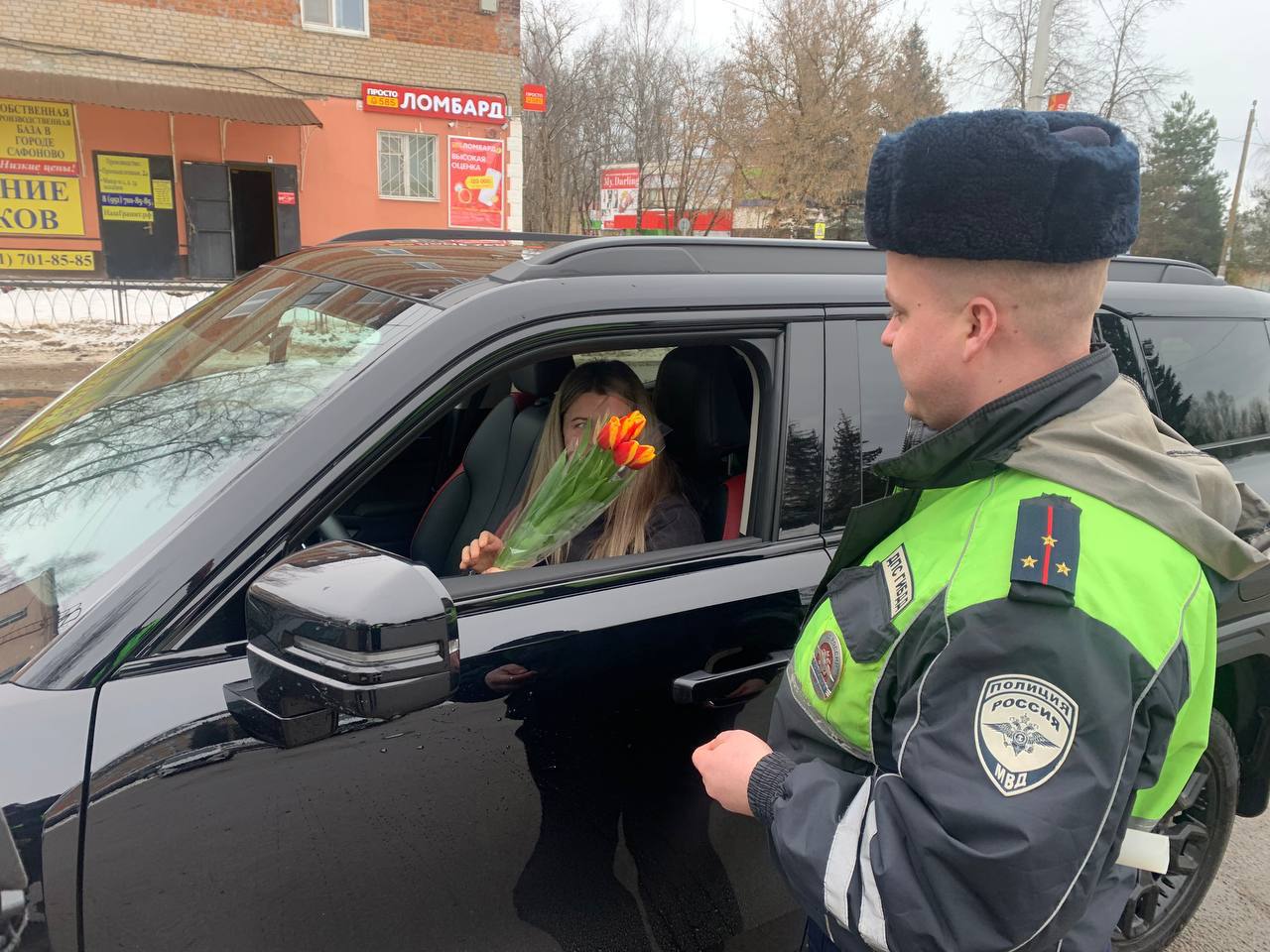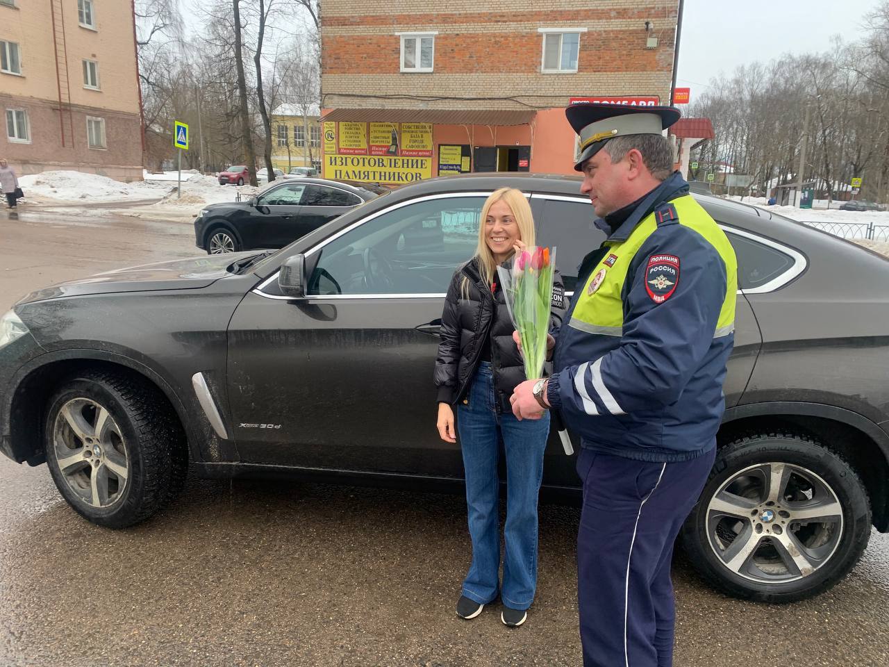 В преддверии праздника автоледи получили от сотрудников Госавтоинспекции МО МВД России «Сафоновский» цветы и поздравления.