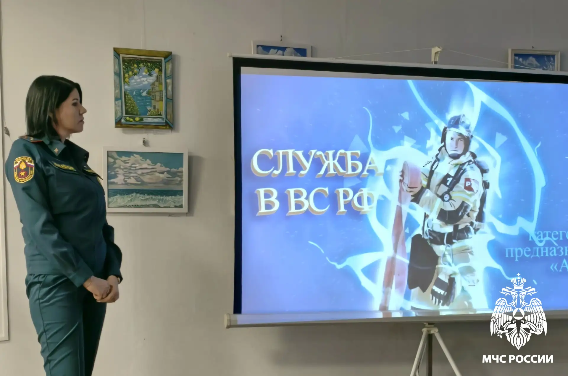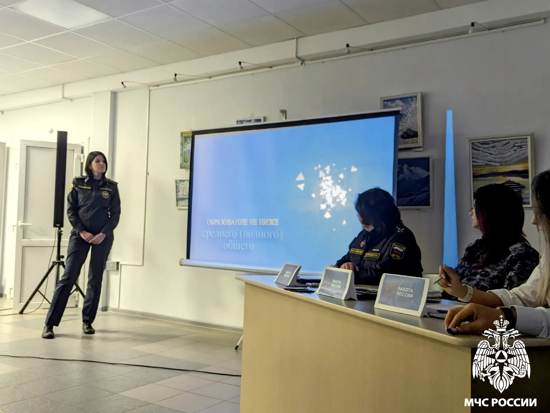 Инспектор группы профилактики пожаров Екатерина Кузнецова провела презентацию сотрудников специального подразделения по охране особо важного режимного объекта для соискателей. Были показаны информационные видеоролики, представлены вакансии, условия службы, возможности целевого обучения в ВУЗах системы МЧС России. В конце выступления были озвучены контактные данные начальника СПСЧ №1 для возникающих вопросов и дальнейшего трудоустройства.