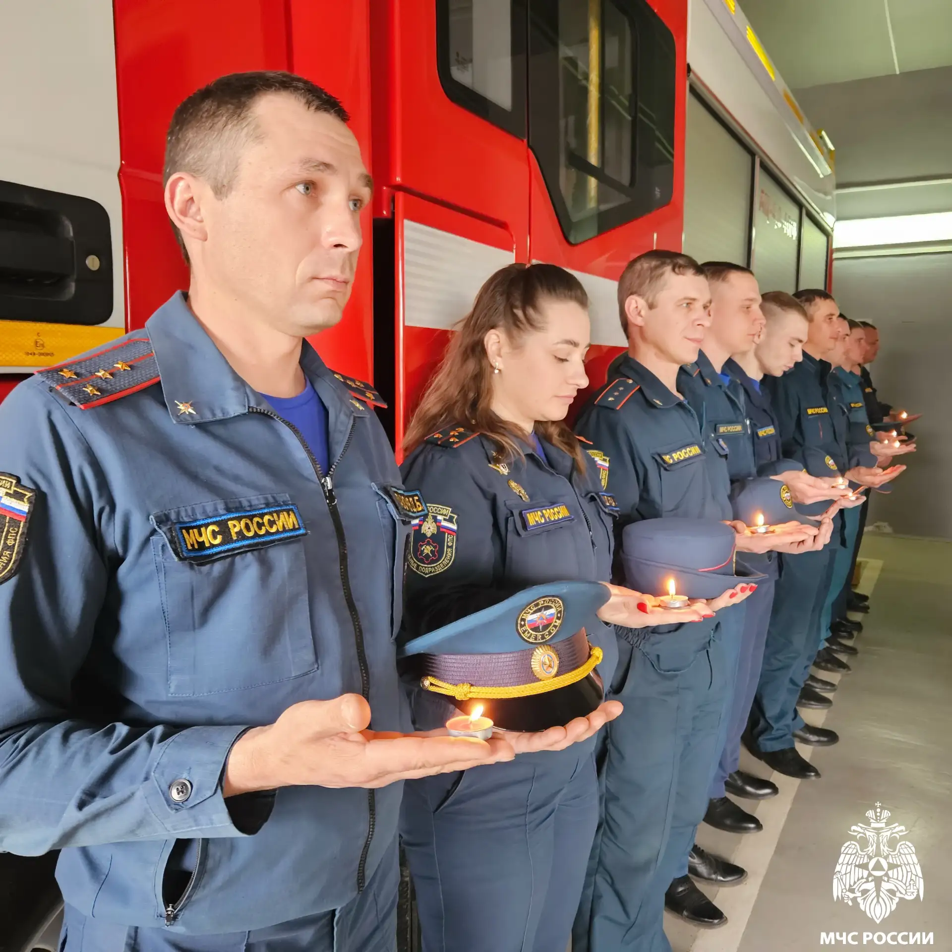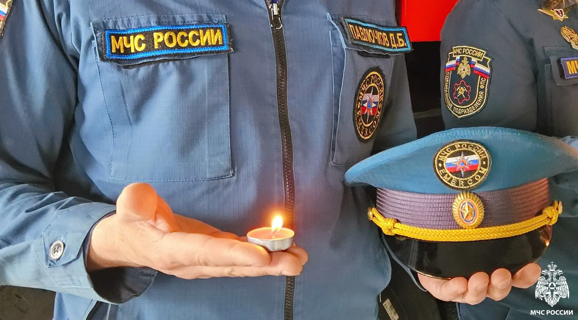Специалисты МЧС России почтили память погибших при исполнении служебного долга во время ликвидации аварии минутой молчания и зажжёнными свечами».