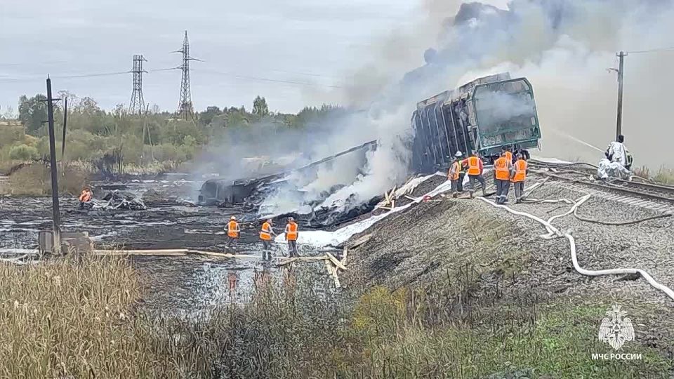 По уточненным данным, в результате происшествия 18 вагонов сошли с рельс с последующим возгоранием. Сотрудники МЧС России локализовали пожар на 400 квадратах и не допустили распространения огня.На месте работают более 100 специалистов и 34 единицы...