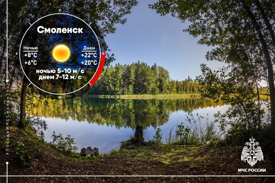 В пятницу, 12 сентября, погода в Смоленской области останется по-летнему теплой. Прогнозируется небольшая облачность без осадков. Ночью и утром местами возможны слабые туманы.Ветер переменных направлений — восточный и юго-восточный, умеренный...