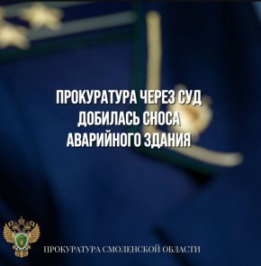 Прокуратура через суд добилась снова аварийного здания Вяземская межрайонная прокуратура добилась через суд снова аварийной постройки. Установлено, что вс. Вязьма-Брянская Вяземского муниципального округа расположен объект капитального строительства...