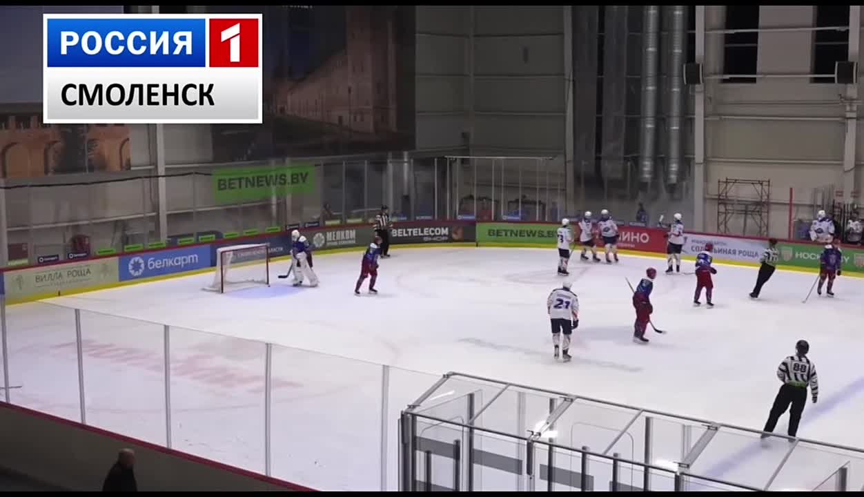 Уже в начале первого периода смоляне завладели инициативой на льду. На 42-й секунде Данила Курков вовремя сориентировался и с передачи Артура Егорова открыл счет. Затем последовало несколько удалений в составе гостей, но реализовать численное преимущество не удалось.