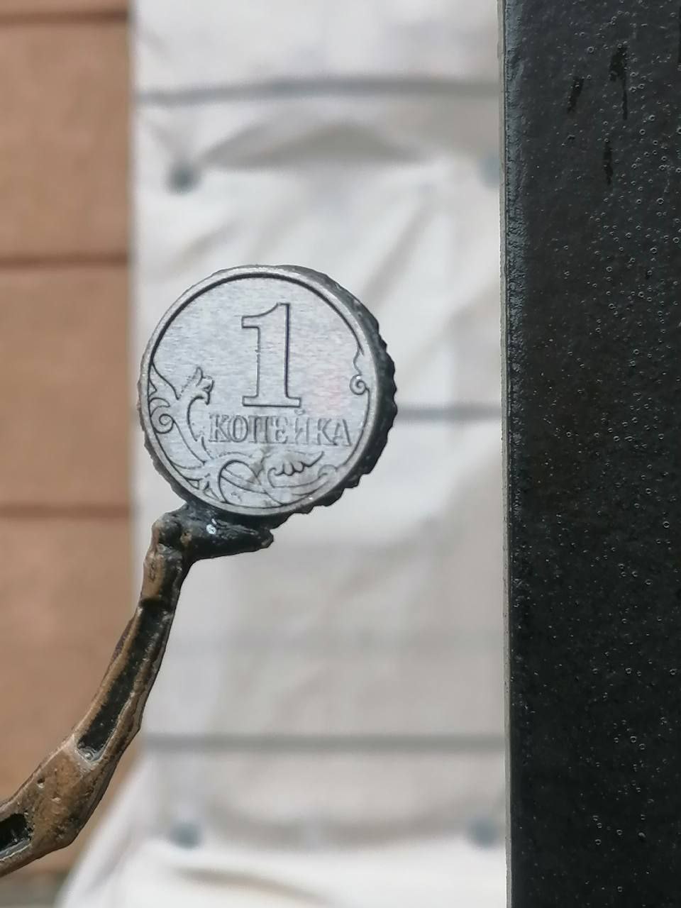 Новая скульптура представляет из себя ангела, стоящего на символе Российской валюты и держащего в руке копеечную монету. Фигурка ангела относится к уже полюбившейся смолянам серии скульптора Александра Ларюцкого.