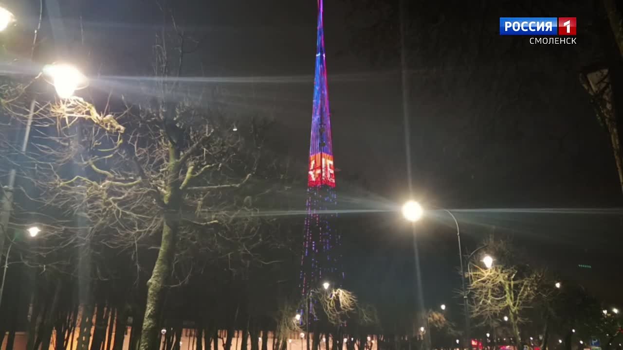 На главной телебашне зажглась праздничная подсветка. Вышка сегодня загорелась разноцветными переливами, а на медиафасаде появилась надпись «Смоленск – молодежная столица! Смоленск – чемпион!». Иллюминация будет работать до 22.00.
