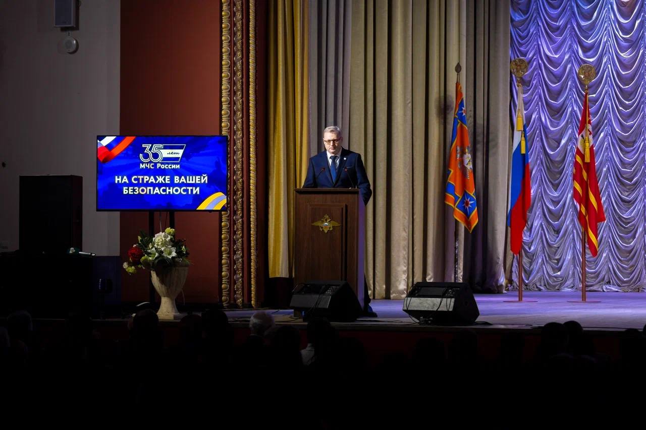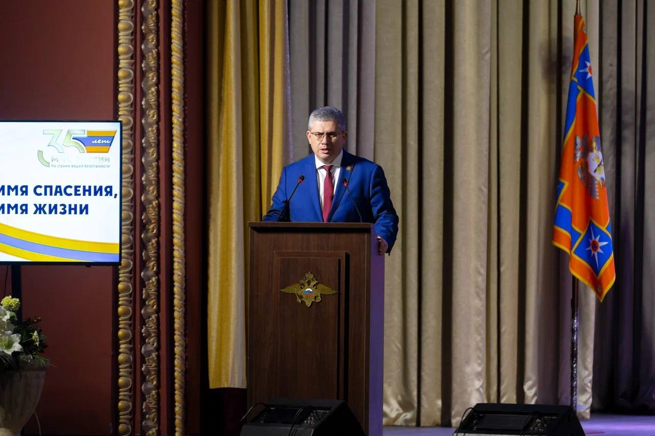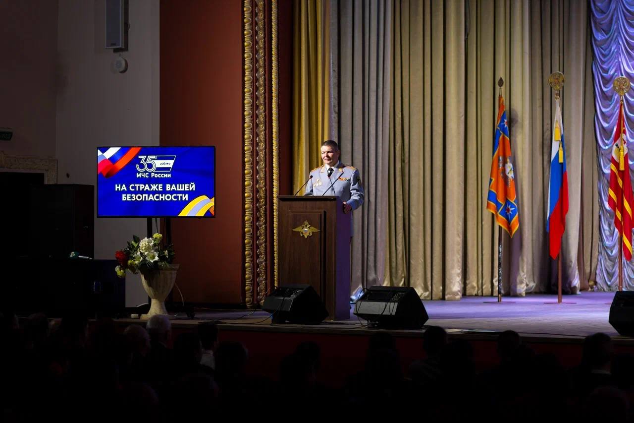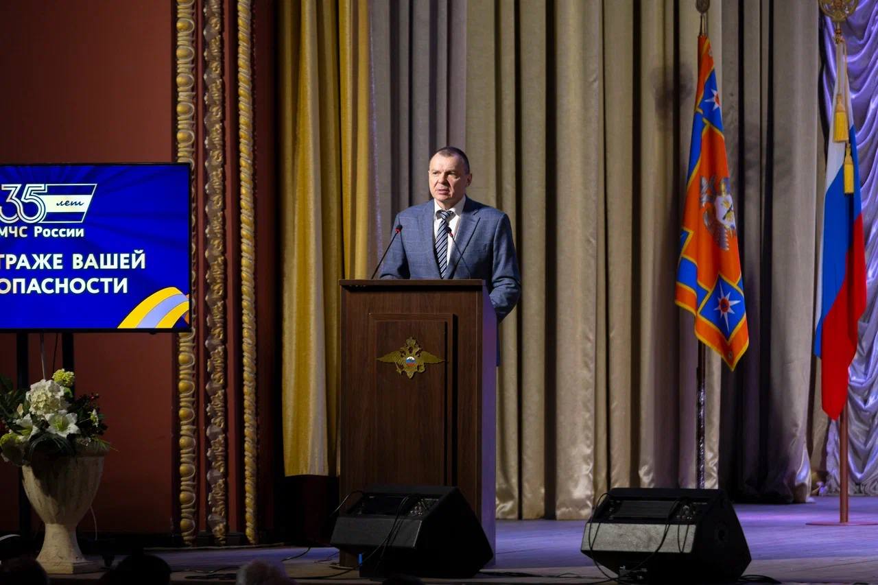 Принял участие в торжественной церемонии, посвящённой 35-летию МЧС России, и поздравил сотрудников и ветеранов ведомства с этой значимой датой.