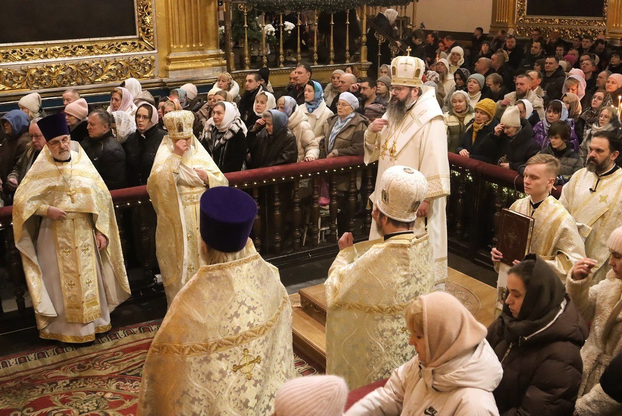 Во время Божественной литургии ключарь Свято-Успенского собора, духовник Смоленской епархии протоиерей Григорий Трубин зачитал Рождественское послание Патриарха Московского и всея Руси Кирилла архипастырям, пастырям, диаконам, монашествующим и всем верным чадам РПЦ. Митрополит Исидор поздравил всех верующих с праздником.