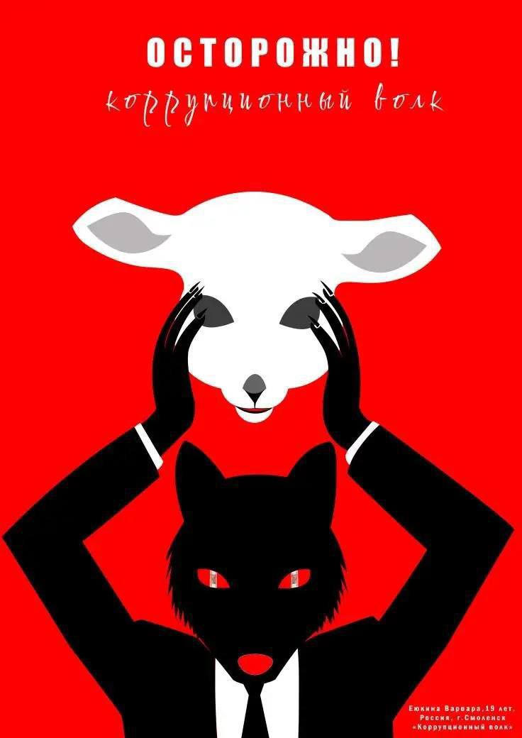 Творческая работа смолянки под названием «Осторожно, коррупционный волк» заняла третье место в номинации «Лучший плакат» в возрастной категории от 16 до 20 лет.