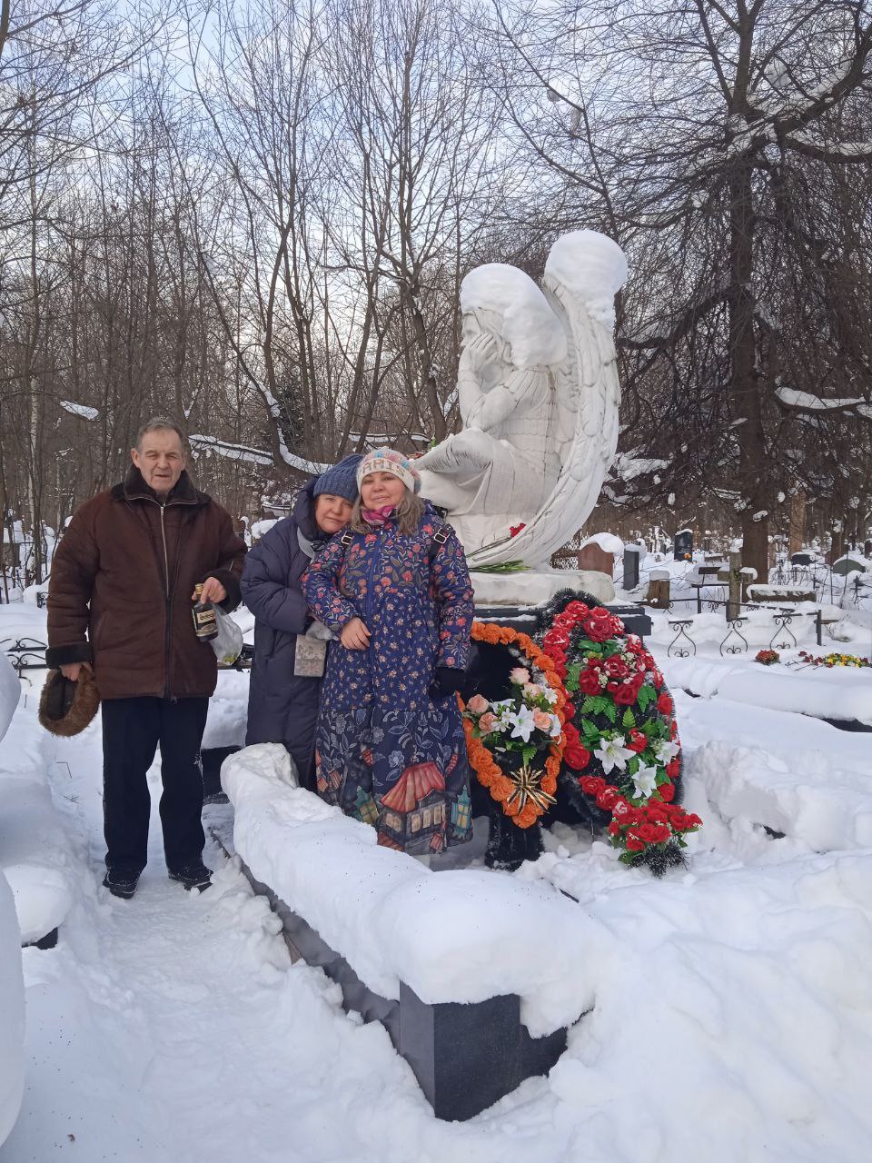 Не стали снимать "морозную шапочку" с изголовья и ангельских крыльев, пусть смотрит Женька за всеми нами в снежном одеянии!
