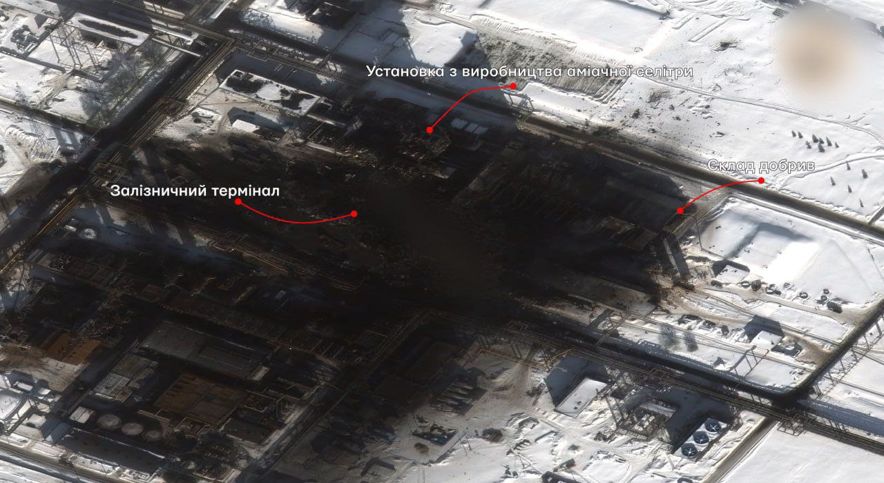 Ущерб пришелся на зону производства и хранения. Взрывы затронули и инфраструктуру завода - площадку автотранспорта и ж/д терминал. Под удар попали установки по производству аммиачной селитры, которая используется в производстве взрывчатки.