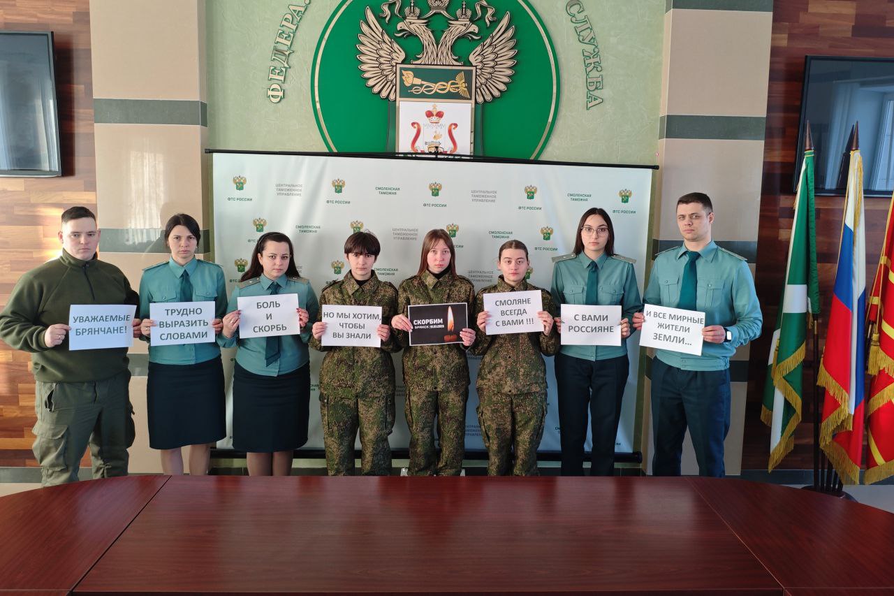 Сотрудники Смоленской таможни провели акцию памяти жертв ракетного удара в Брянске
