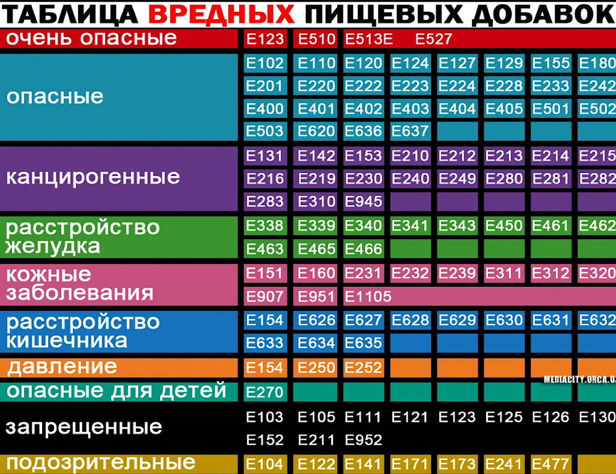 - E621 (Глутамат натрия): часто встречается в фастфудах и готовых продуктах. У большей части людей он не вызывает негативных реакций, но у некоторых может провоцировать головные боли и другие симптомы, известные как "синдром китайского ресторана".