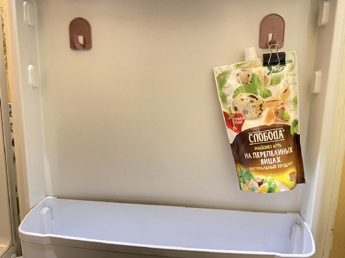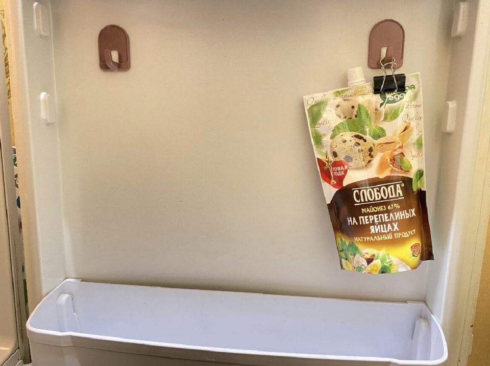 Также стоит запастись канцелярскими зажимами. Они помогут удобно подвешивать пакеты с соусами, такими как майонез или кетчуп, что существенно сэкономит пространство и упростит доступ к необходимым продуктам.
