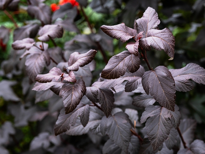 - 'Red Baron' — компактный куст с ажурными красно-пурпурными листьями, которые меняют окраску в зависимости от времени года;