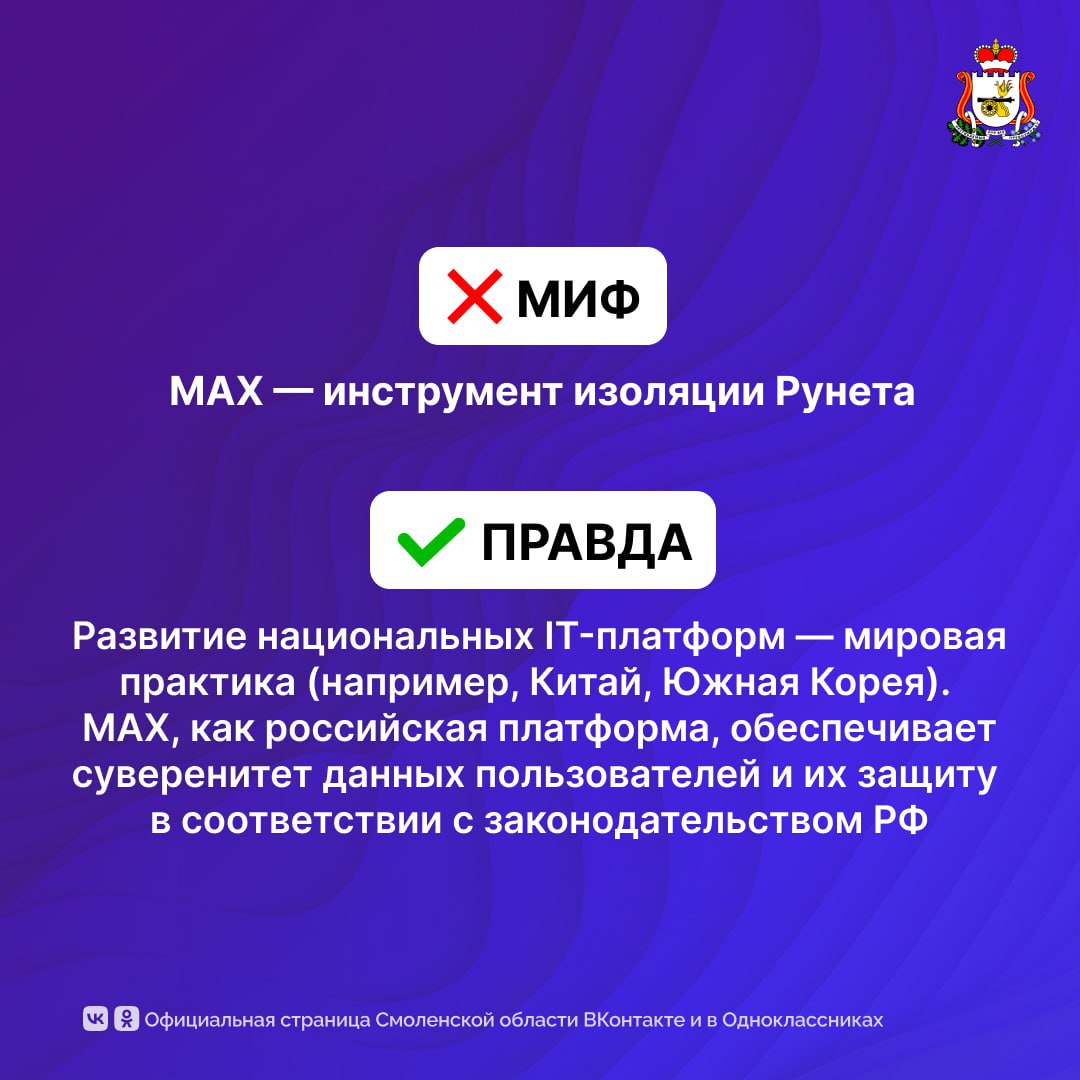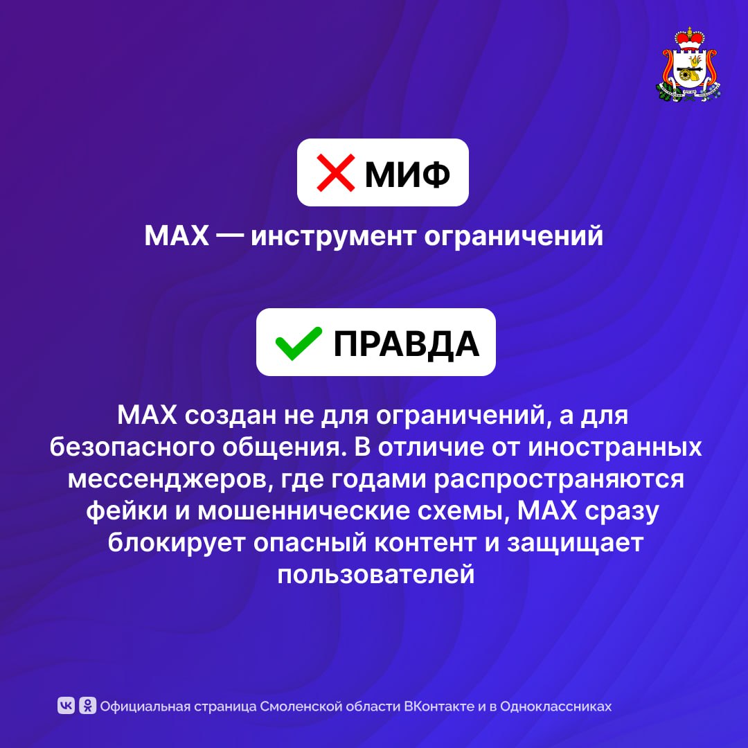 А мы напоминаем, что официальные каналы губернатоар Смоленской области Василия Анохина и правительства уже в MAX. Подписывайтесь, чтобы быть в курсе важных новостей региона!