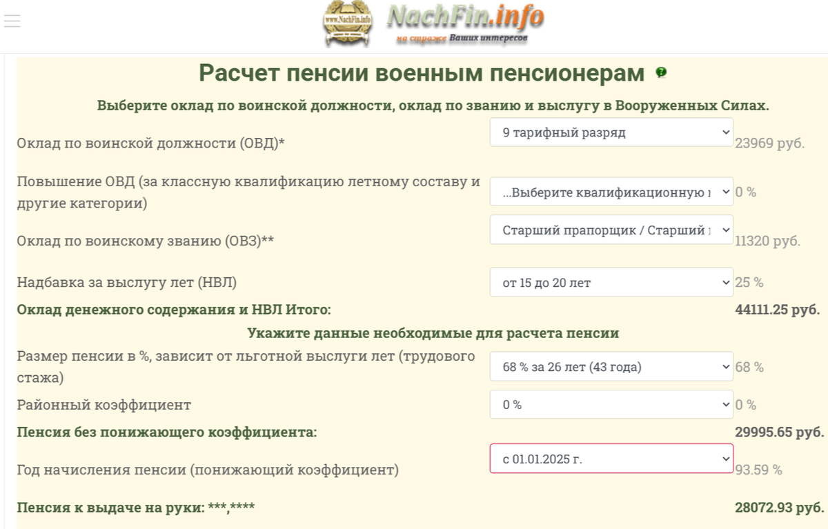 - Выслуга составила 3,2 года, что добавляет дополнительные выплаты согласно пенсионной формуле.