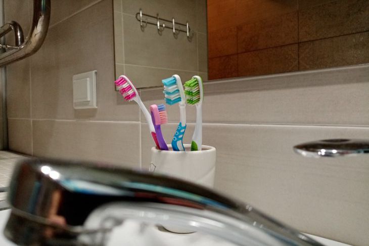 Также старую зубную щетку удобно держать сразу же возле отбеливателя и стиральной машины, если потребуется срочно удалить некие загрязнения на одежде.