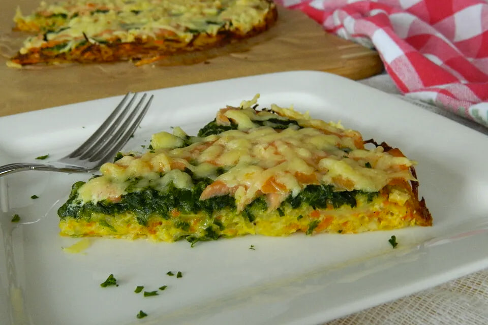 Для начала картофель и морковь следует натереть на мелкой терке и отжать лишний лишний сок. К овощам добавляются три яйца из четырех, мука, а также соль и перец по вкусу. Полученную массу аккуратно выкладывают на противень, предварительно застеленный бумагой для выпечки, и помещают в разогретую до 200 градусов духовку на 20 минут.