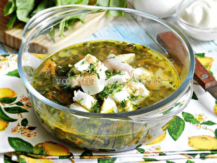 Суп снимают с огня и дают настояться 10-15 минут. Яйца отвариваются в течение 9 минут, остужаются, очищаются и нарезаются крупными кубиками. Суп разливают по тарелкам, добавляют нарезанные яйца, немного сметаны и посыпают рубленым укропом. Такой щавелевый суп станет отличным поводом собраться всем за столом и насладиться легким и свежим вкусом весны.