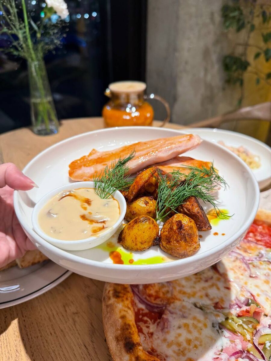 Помимо основного меню, здесь можно найти интересные напитки, такие как облепиховый коктейль с розмарином и вкусный сливочно-шоколадный какао. Заказ можно оформить и на доставку, которая охватывает Красносельский и Приморский районы. Цены варьируются, например, хлеб из печи с розмарином стоит 320 рублей, пицца — 920, а паста с лососем — 850 рублей.