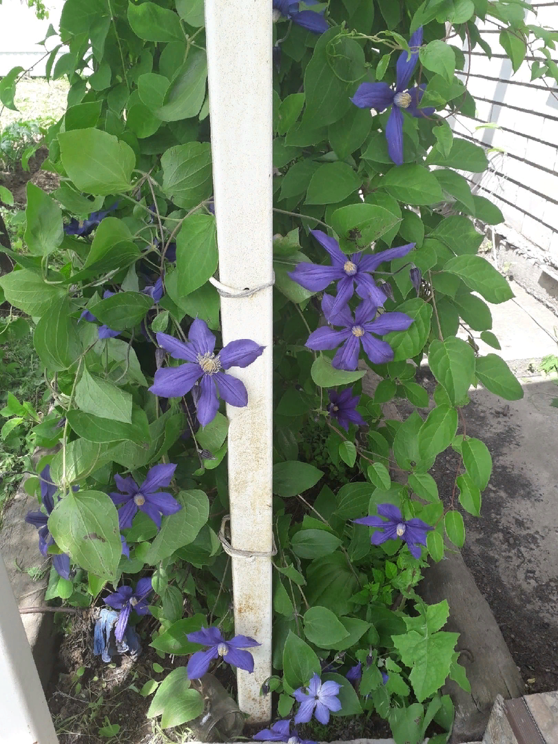 - Вторая группа: Эти клематисы цветут дважды — весной на старых побегах и летом на новых. Обрезка у них проводится только в верхней части побегов, оставляя длину плетей от метра до полутора. Плети аккуратно снимаются с опоры и укрываются на зиму, не наматывая их, чтобы избежать повреждений.